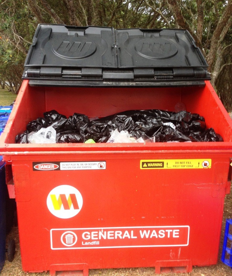 The majority of ‘rubbish’ collected was compostable (orange bags below), then there was the recycling (white bags) and finally ….. (next photo…)