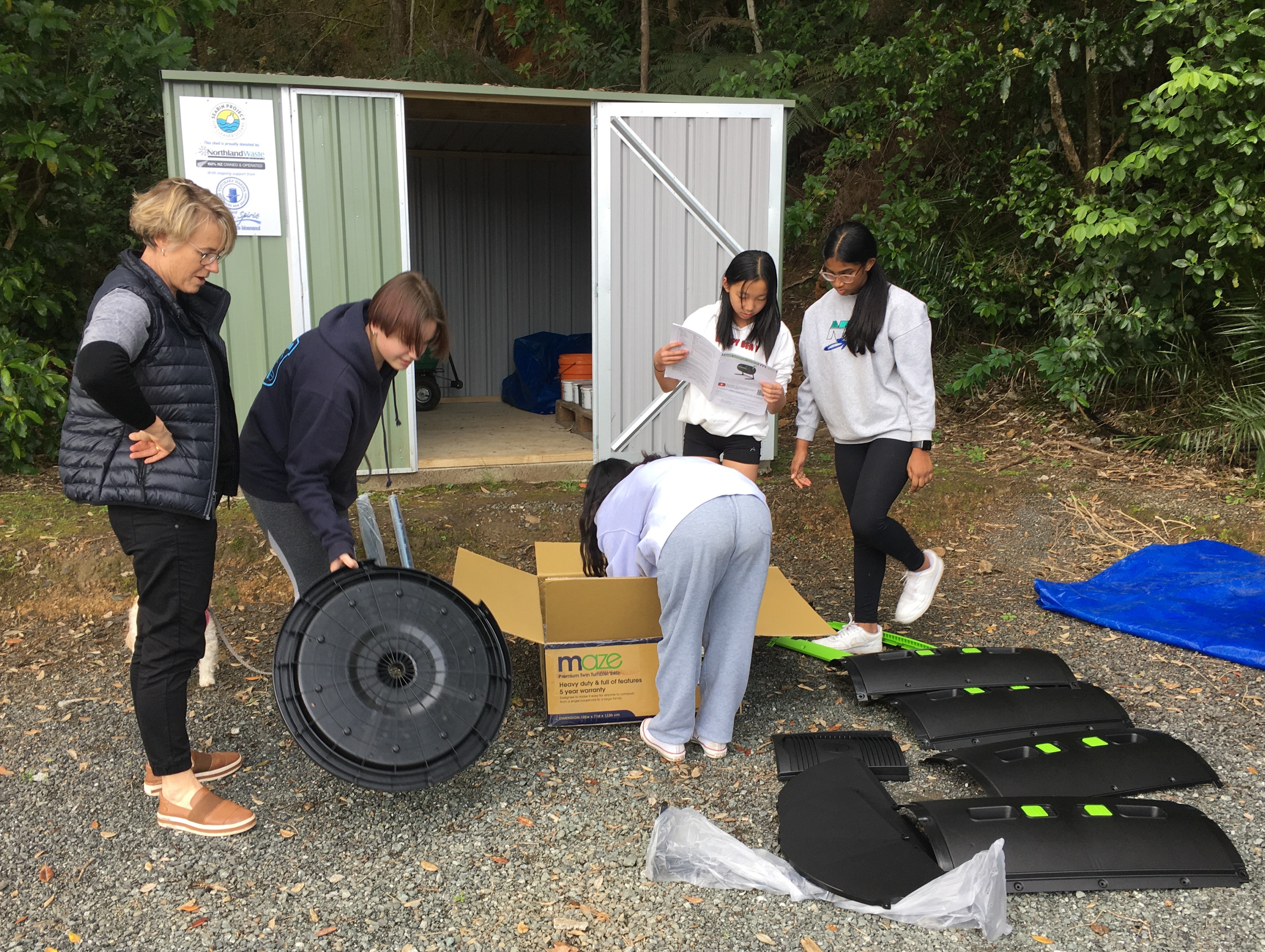It’s quite a complicated 22 step process to put the bin together, but the team from Huanui College are having great fun sussing it all out!