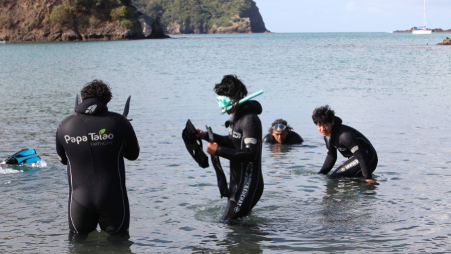 Students from Papa Taiao enjoy the kelp lab and snorkeling at Church Bay, Tutukaka.