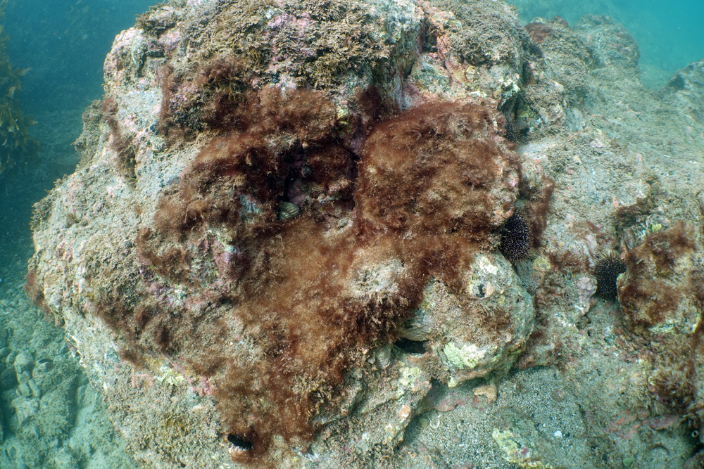 Fringing reef along the shoreline with several rocky outcrops separate from the shoreline. Bottom composition is shell and sand. The bay is exposed to swells from the north and east and is affected by runoff from Matapouri Estuary to the north west. A small creek empties into the bay at the start of the survey site.